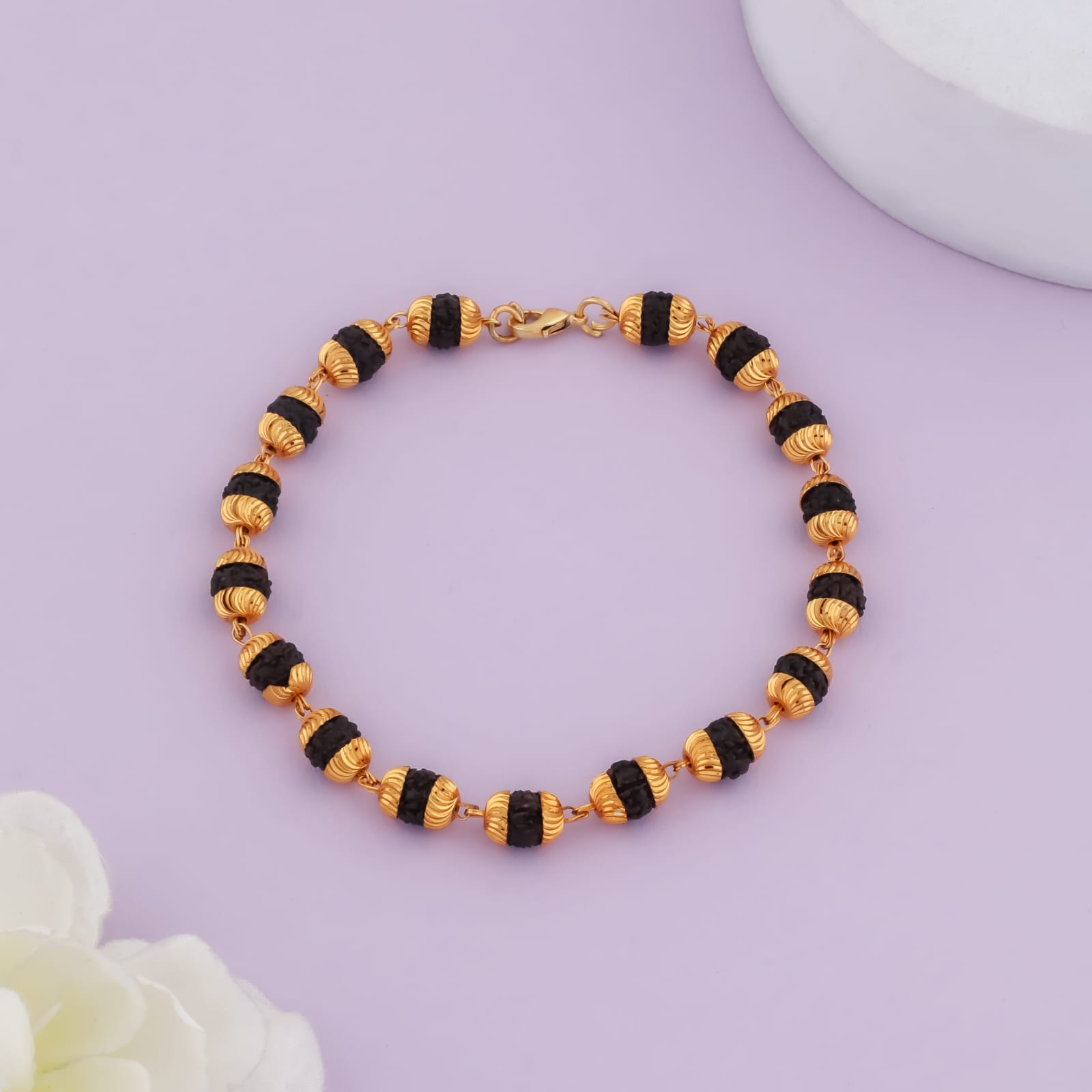Black Rudraksha Bracelet with Designer Gold-Plated Caps