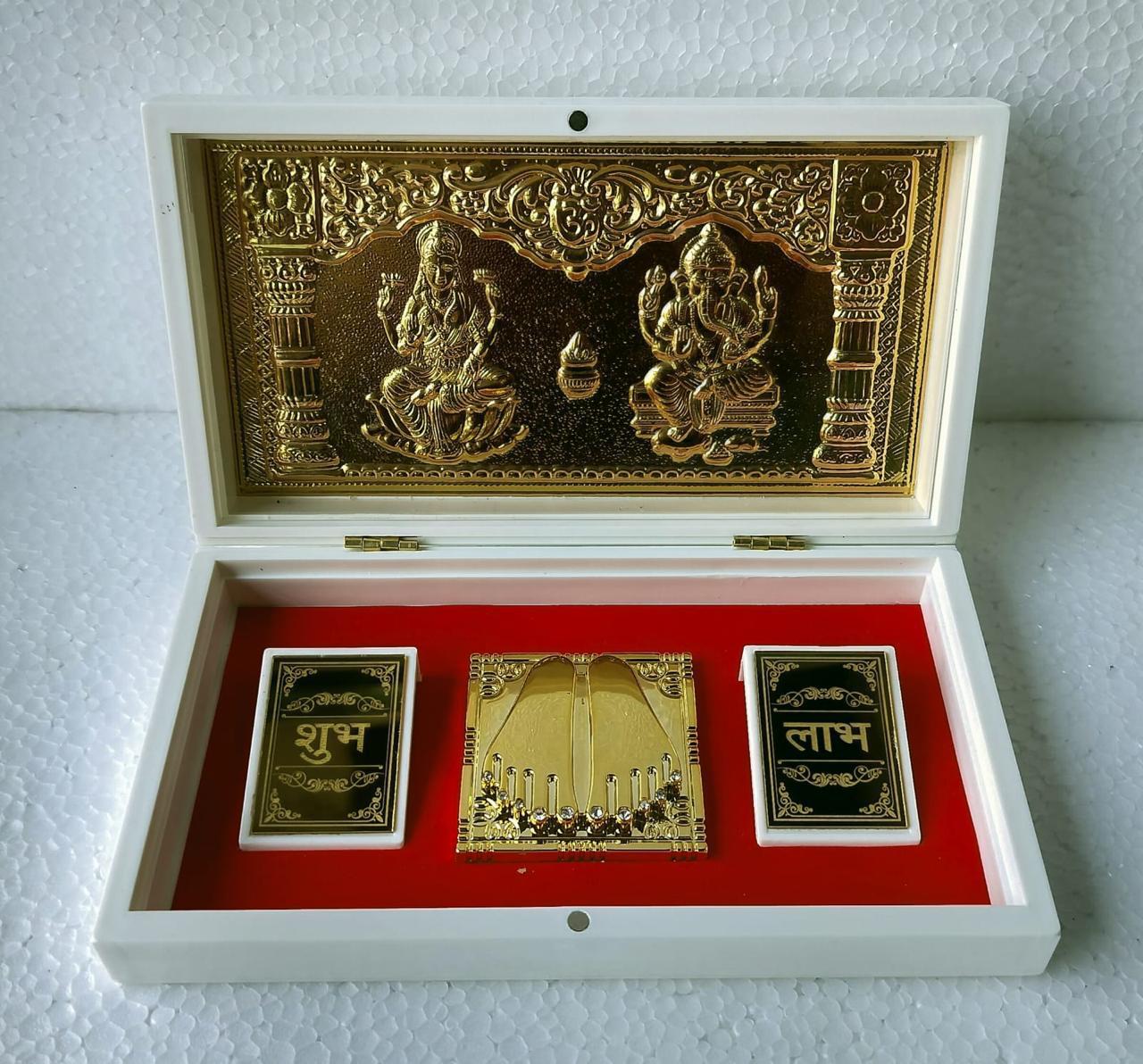 - Auspicious Plaques – Includes two gold-plated plaques inscribed with “Shubh” (auspiciousness) and “Labh” (benefit/profit) for attracting positivity.